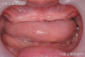 治療概要 概要:若い頃から入れ歯を使用し噛めない・笑えない悩みを抱えていたが、上下インプラントで噛み合わせと表情が改善。再手術も経て安定している。、治療内容:上下ワンデイインプラント(再オペあり)、リスク:腫れ・痛み・出血、骨結合不全、長期脱落、再手術の可能性、副作用:術後の痛み・腫れ・違和感