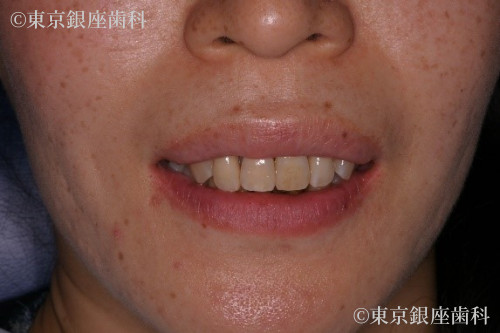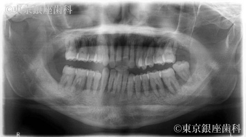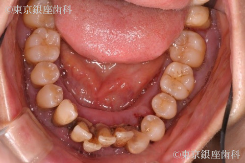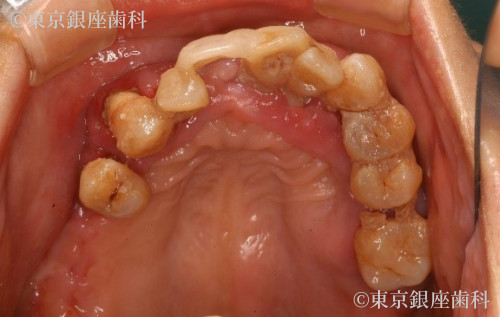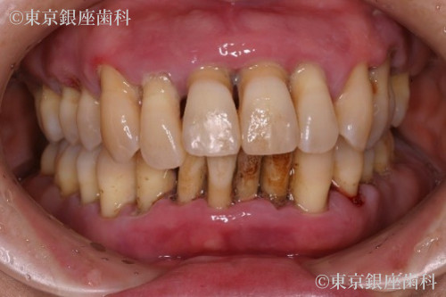 何年間も歯科医院には通っておらず、全ての歯の揺れがひどく今にも抜けそうだったが金銭的な理由により一時保留にしていた。3年後に来院した際には、歯周病が悪化し著しい歯の揺れ、骨の吸収が見られた。そして左上の前歯が自然脱落した。