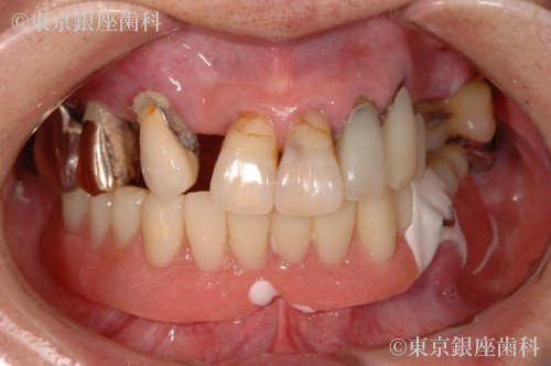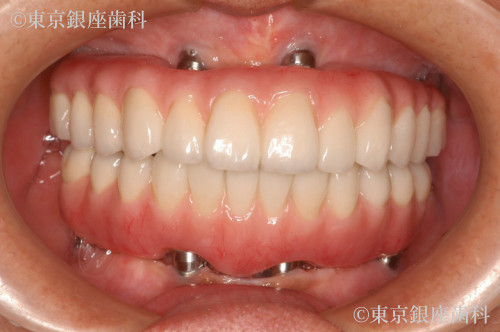 20年前にワンデイインプラントを実施。土台は安定していたが人工歯が経年劣化し再度新製を選択。スペアも作成し将来の負担を軽減した。