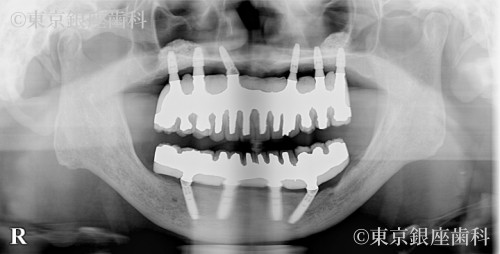 嘔吐反射で入れ歯が使えず複数医院で治療を断られていたが、当院の精密診断でワンデイインプラントが可能と判明。現在は上下とも安定。