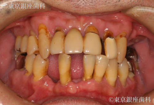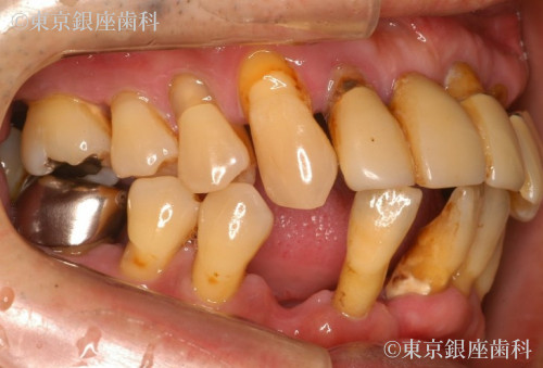 20代の頃からブラッシング時の出血等の症状があるも特に痛みもないため治療せず放置。