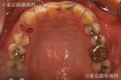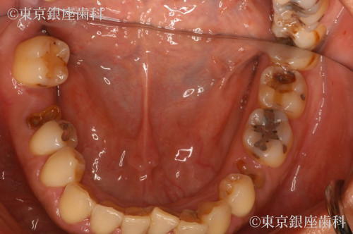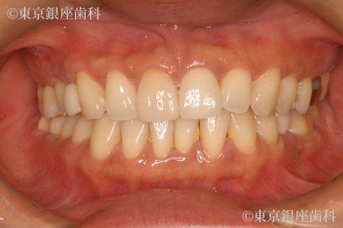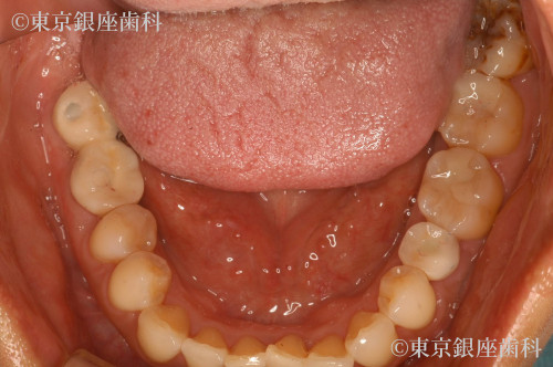歯周病により歯茎の状態が不安定なので、かぶせものを行った場合、見た目が汚くなる可能性がある為、事前に歯周病の治療を実施。