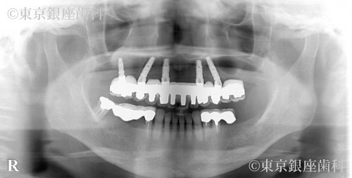 複数の奥歯を長期間失い、前歯に過度な咀嚼力の負担がかかってしまったため、全顎的にインプラントを支台とした口腔機能回復が必要となった症例