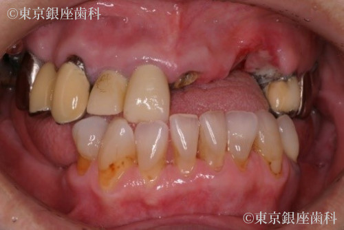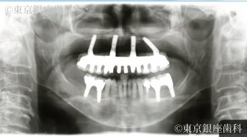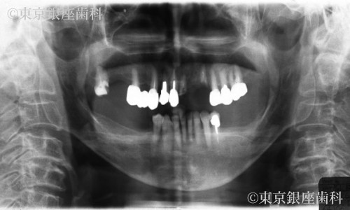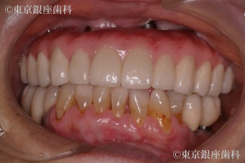 入れ歯での咀嚼機能の回復を患者様は望まず、固定式の人工歯による口腔内全体の機能回復をご希望されました。