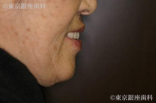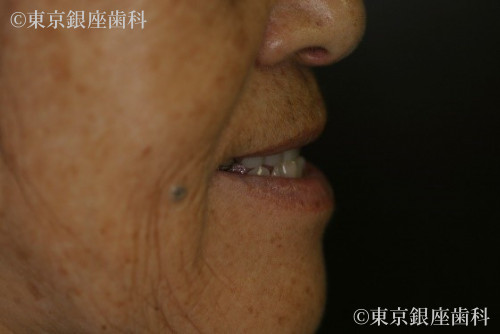 上顎に関して、ワンデイインプラントによって少ない本数のインプラントを支台とした全顎的な人工歯での機能回復が得られました。