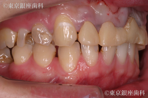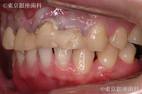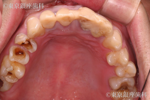 前歯の4本が保存も難しい状態であった為、抜歯・インプラント埋入・仮歯の固定を即日で行う部分ワンデイの治療を計画した